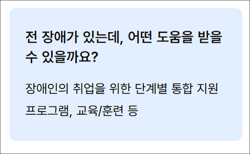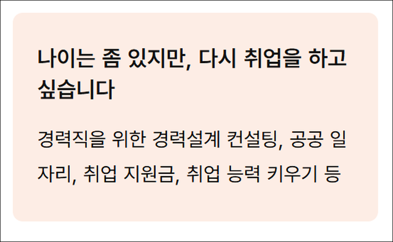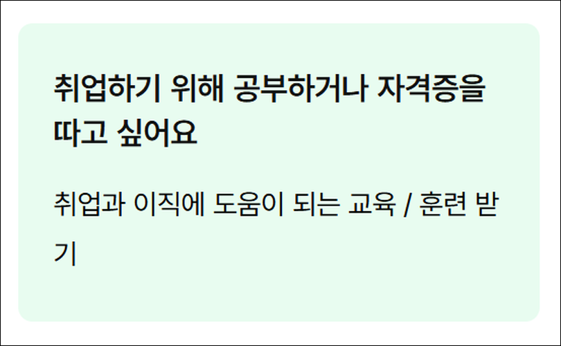 ㅇ 개인서비스 취업지원, 실업급여, 출산휴가급여, 육아휴직급여, 직업훈련에 대한 종합 정보 ㅇ 기업서비스 청년·고령자·외국인 채용지원, 신규채용·고용유지·유연근무·일자리전환 지원