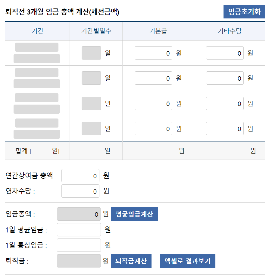 | 평균임금 산정 | 퇴직 전 3개월 간 임금 총액을 해당 기간의 총 일수로 나눔 |
